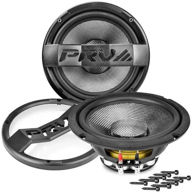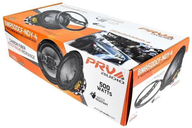 Built for loud, clear vocal performance in tight, compact spaces, PRV Audios 8MR500CF-NDY-4 neodymium-powered midrange features a sensitivity of 96 dB ( 2.83V /1m) and weighs about 4.16 pounds! 4 ohm impedance. Pro Audio On Wheels Series is dedicated to delivering outstanding pro audio performance to your motorsports application. A bumped back plate, vented magnet system, vented pole piece, high-temperature voice coil, allow for high power handling while protecting this driver from extreme transient power peaks.