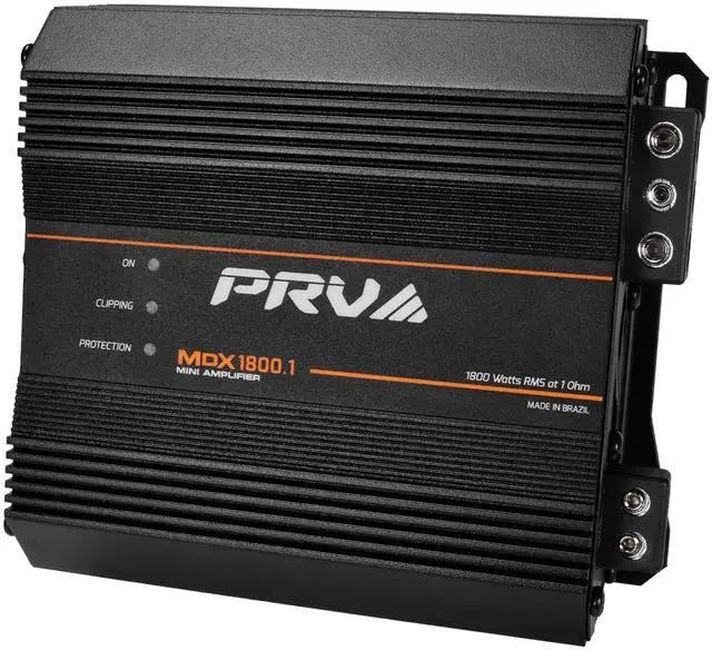 MINI Monoblock Amplifier - 1 Channel 1800 watts at 1 Ohm TRUE RMS certified at full range output Digital Class D Brazilian Technology ^^ A small footprint mini heavy duty heatsink make this micro amplifier easy to install anywhere in vehicles, motorcycles, 4-wheelers: