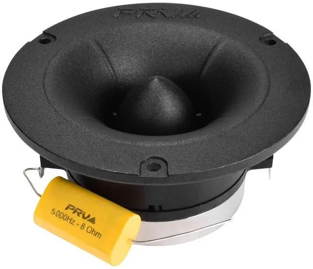 This Neodymium Bullet Tweeter features a Mylar diaphragm for low distortion and extended high frequency response ^^ Built-in capacitors act as a crossover and attenuates the low frequencies for smooth frequency response ^^ Able to take a ton of power! Up to 150 watts RMS of power handling EACH ^^ Designed to add high output, high frequency response to any large system ^^ Producing a sensitivity of 109 dB 1W/1m this tweeter can keep up with even the most efficient sound systems.