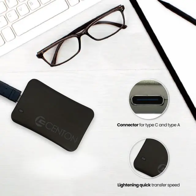 Centon External SSD (Black), USB-C 3.2 Gen 2, 1000GB