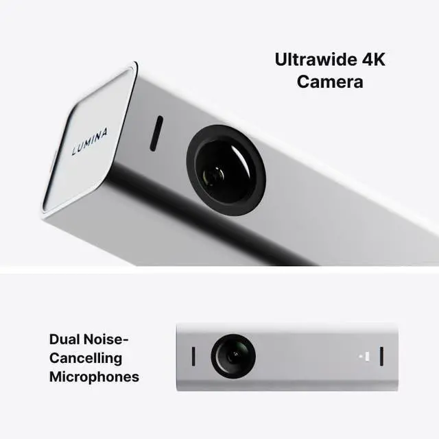 Look better on every video call. Lumina's proprietary AI makes you look amazing on calls. ^^ DSLR quality video. Ultrawide 4K camera with a wide-angle 95 degree field of view. ^^ Dual mics, crystal