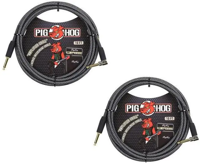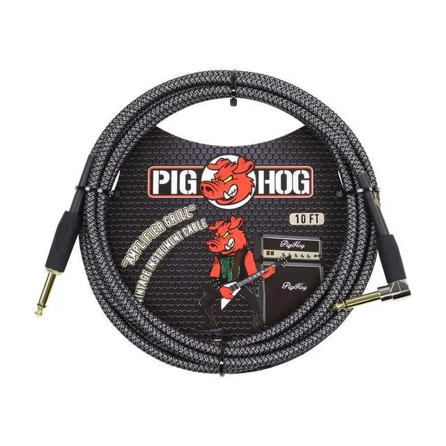 2 PACK PIG HOG "AMP GRILL" INSTRUMENT CABLE, 10FT RIGHT ANGLE, PCH10AGR Pig Hog Vintage Series cables are precisely overbuilt to stand up to the most grueling tour conditions imaginable. They feature extra-thick tour grade wire, unique high quality woven jackets, performance quality connectors, and tension-resistant stress relief. And with Pig Hog's "no question" lifetime guarantee, we've got your back for the life of the cable. Don't settle for those fat-free cables. Grab hold of a Pig Hog! High performance instrument cable Unique, high quality, woven outer covering Gold plated 1/4"-1/4" right angle connectors Lifetime guarantee