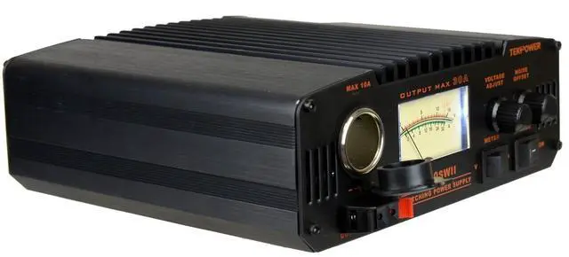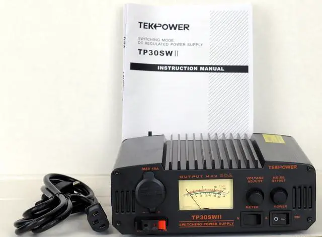 TekPower TP30SWII 30 Amp DC 13.8V Switching Power Supply with Noise Offset The TekPower TP30SWII is an analog professional DC power supply for powering many devices such as Ham/CB radio and amplifiers. It is a highly stable, fused, high quality switching power supply with 13.8V fixed, 9-15V adjustable DC power output, and 30A max current. It has a main DC output on the back of the unit, a cigar socket, and a snap in output on the front. It has excellent line and load regulation, low ripple and noise.