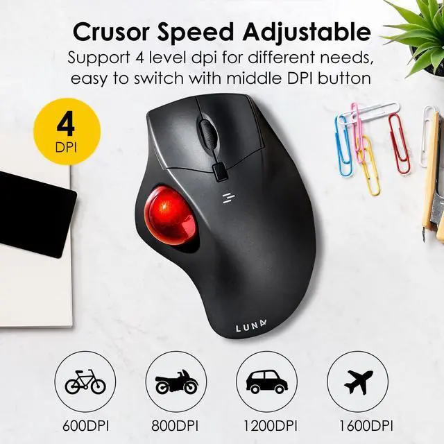 [(Ergo Trackball Mouse)] - This ball mouse wireless consists of a 40mm trackball, high-sensitive 3-dot positioning technology, and thumb control to move the cursor smoothly & accurately. Keep your wrist and mouse in one place, and reduce hand movement. This track ball mouse usb wireless supports 4 levels cursor movement speed: 600/800/1200/1600. Suit different tasks, ensuring accuracy & speed.