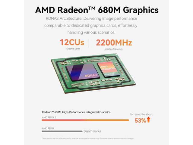 • Powerful AMD Ryzen 7 7735HS: This Beelink Mini PC is equipped with AMD Ryzen 7 7735HS (8 cores 16 threads, 3.2GHz - 4.75 GHz, 16M L3 Cache). The performance of 7735HS mini pc is improved by 34% compared to 5700U, 22% compared to 6600H and by 12% compared to 5800H. This mini computer is integrated with an AMD Radeon 680M 12 core 2200 MHz graphics, ideal for office work, editing high-resolution videos and images, multimedia playback with KODI or IPTV up to 4K and light gaming