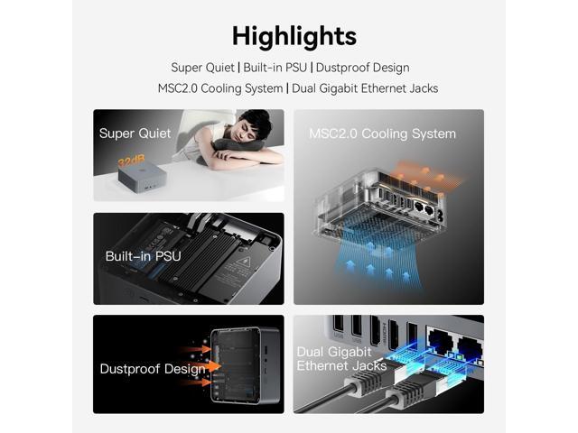 • New Breakthrough Designs: Beelink EQR6 mini pc is built in with 85W power supply, simplify your space with less cable clutter. The MSC2.0 cooling system brings stronger heat dissipation and help the AMD mini pc runs smoother and quieter. The dust filter prevents dust accumulation inside the small pc, making cleaning the EQR6 less cumbersome and ensuring trouble-free operation