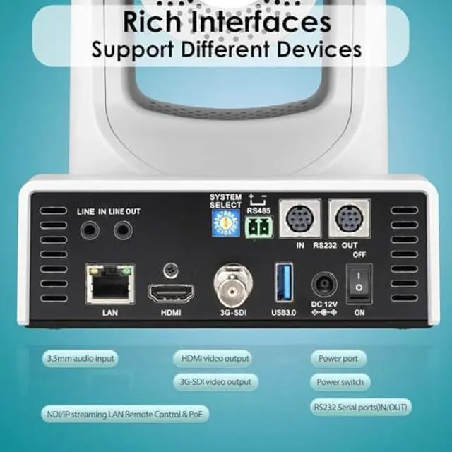 Camera Video System: 1080p/60, 1080p/50, 1080i/60, 1080i/50, 1080p/30, 1080p/25, 720p/60, 720p/50, 720p/30, 720p/25, 640x480p/240SD: 480i, 576i