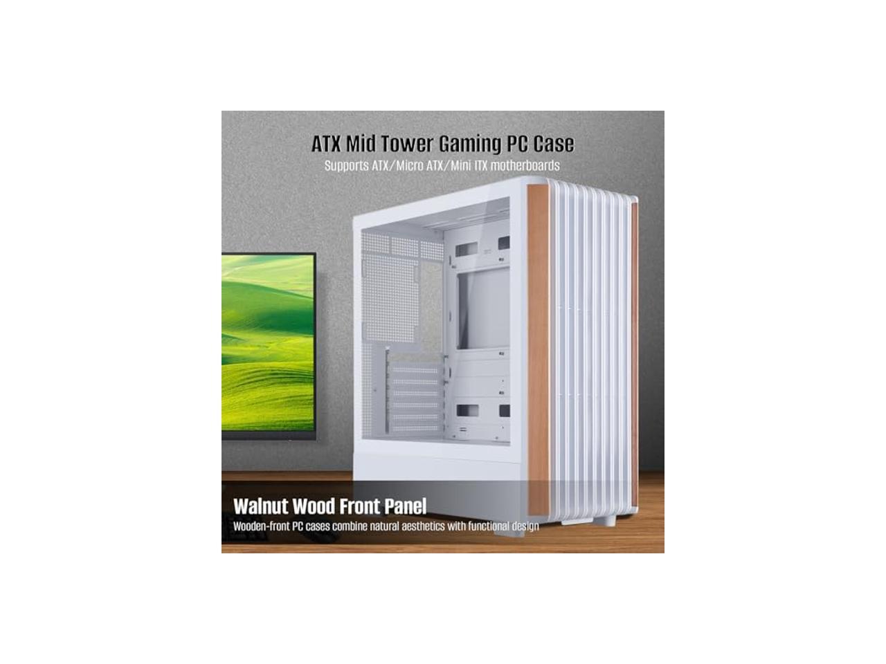- Walnut Wood Front Panel: Wooden-front PC cases combine natural aesthetics with functional design, featuring premium materials for a sophisticated, eco-friendly look. Their open-grid wooden panels enhance airflow while mainta