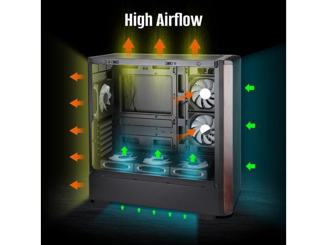 Pre-installed with 6 × ARGB PWM FansTop of power compartment: 120mm*3; Rear panel: 120mm*1; Front side of motherboard: 120mm*2.