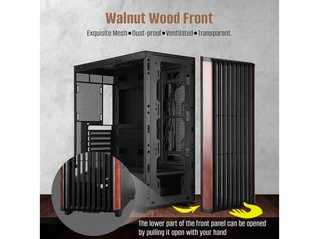 Walnut Wood Front Fusion with SPCC Steel FrameworkWalnut wood with its dark brown to give the chassis retro, warm visual effect, warm touch and modern functionality is characterized by the fusion of aesthetics and practicality.