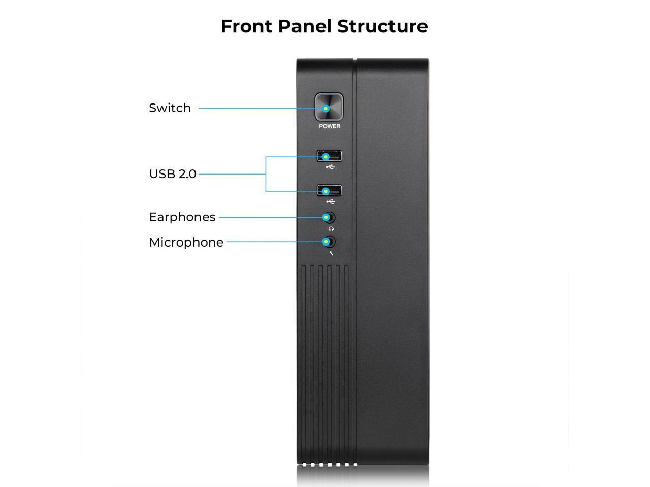 - SFF PC Case: 3.5L small size (21.6x22.7x7.2cm). Build 0.8mm SPCC,more substantial and robust than 0.4/0.6mm, offering superior resistance to scratches and impacts. Front I/O 2x USB 2.0 and HD audio ports. The mini itx case can be hung behind your screen.