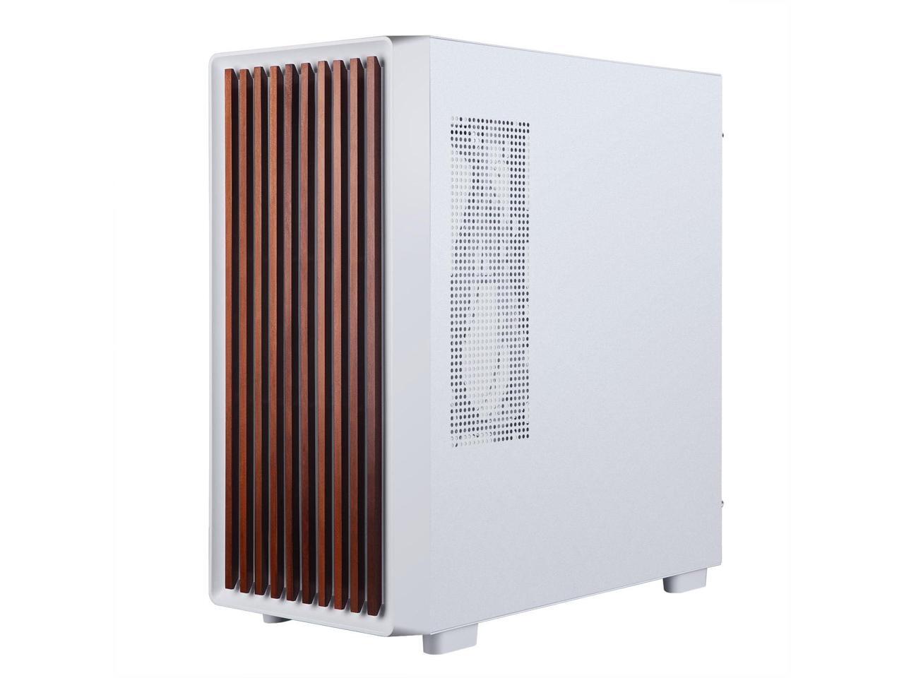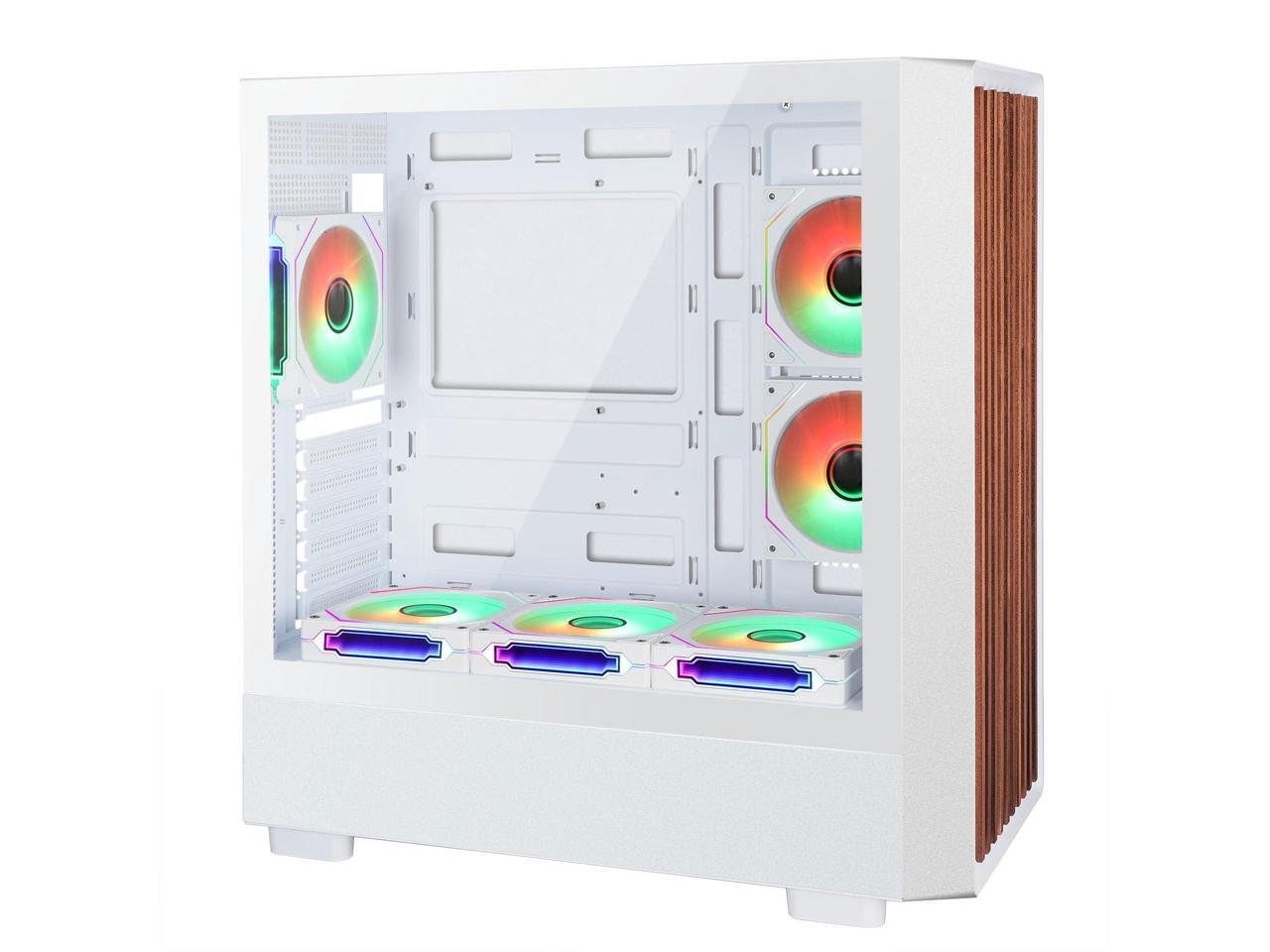 D2-W-F High Airflow Tempered Glass Side Panel Mid-Tower ATX PC Case - Walnut Wood Front with 6 ARGB PWM Fans Dual Chamber Gaming Chassis 360MM RAD Support for ATX/mATX/ITX Motherboards White