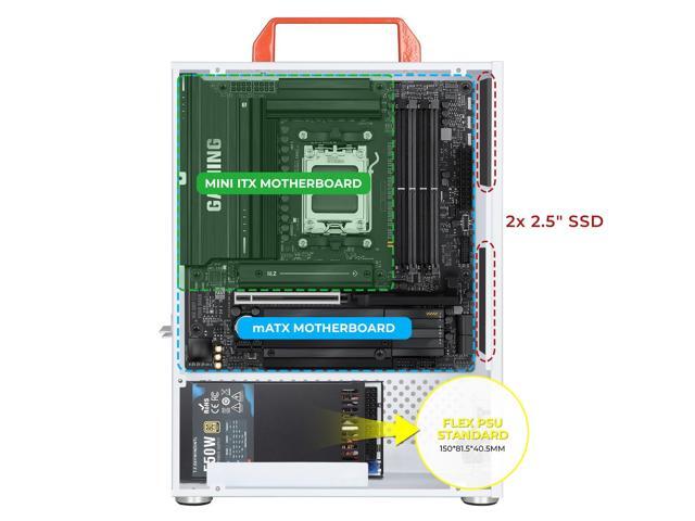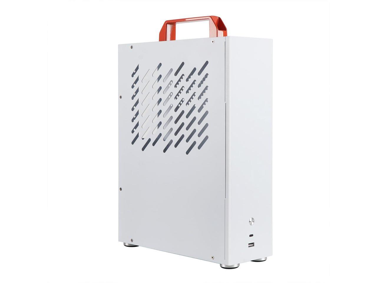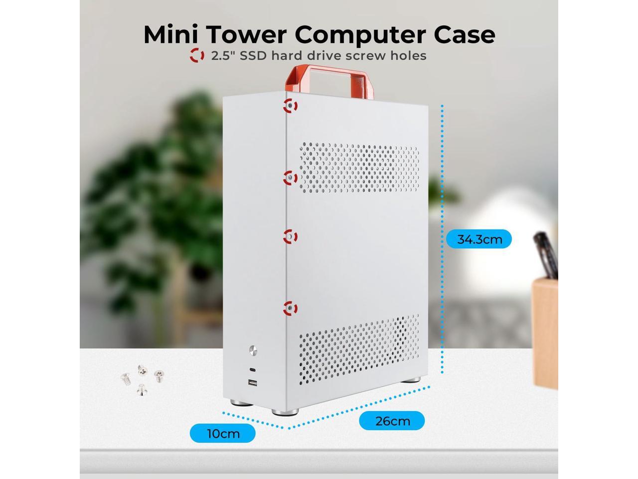 - mATX Case with Handle: This sleek white pc case features an integrated orange metal handle, making the micro atx case with handle exceptionally easy to carry. The matx case with handle is crafted from 0.7mm thick SPCC steel, offering excellent wear-resistant and flexibility. Its compact form factor as a mini pc case is ideal for saving space, and the sff case can be positioned either vertically or horizontally to fit seamlessly into entertainment centers or tight desk setups.
