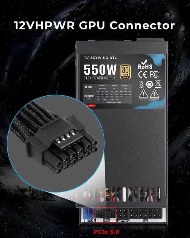 Single Connector High End Graphics Cards Gen 5 12VHPWR GPU Connector. The 550w power supply is suitable for low-end graphics cards, such as RTX 3060 Ti and below, not support high-end graphics cards or multi-GPU configurations.