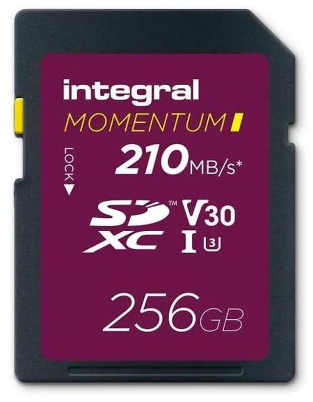 Integral Momentum I 256GB SDXC UHS-I V30 U3 Card - Up to 210MB/s Read, 180MB/s Write - for DSLR, Mirrorless & Camcorders - 4K UHD Video & Burst Mode Ready - Waterproof, Shockproof, Rugged