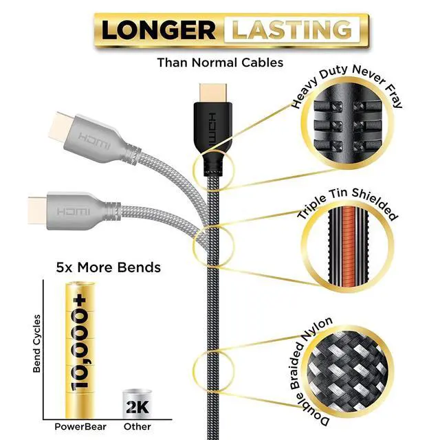 Quality HDMI Cable: This HDMI cable has 28WG copper wire, triple tin shielded in a double braided premium nylon with gold plated corrosion resistant connectors for guaranteed top tier image & sound ^^
