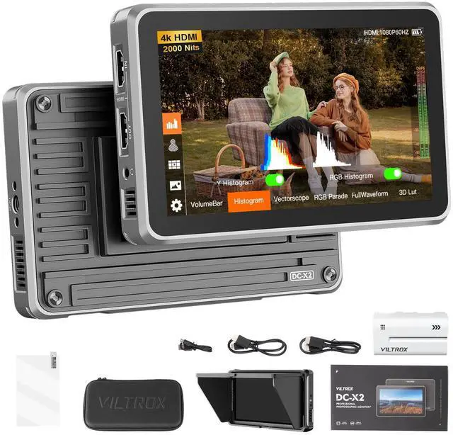 VILTROX DC-X2 6 inch Touchscreen Camera Field Monitor 4K HDMI Video Monitor with Sunshade Hood/Battery 2000nits 160°Wide View Angle 1920X1080 3D LUT Peaking Focus Assist Monitor