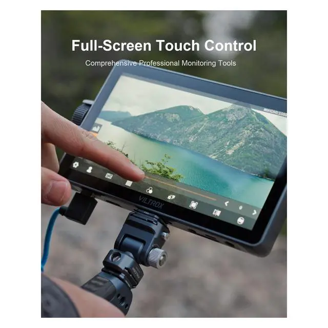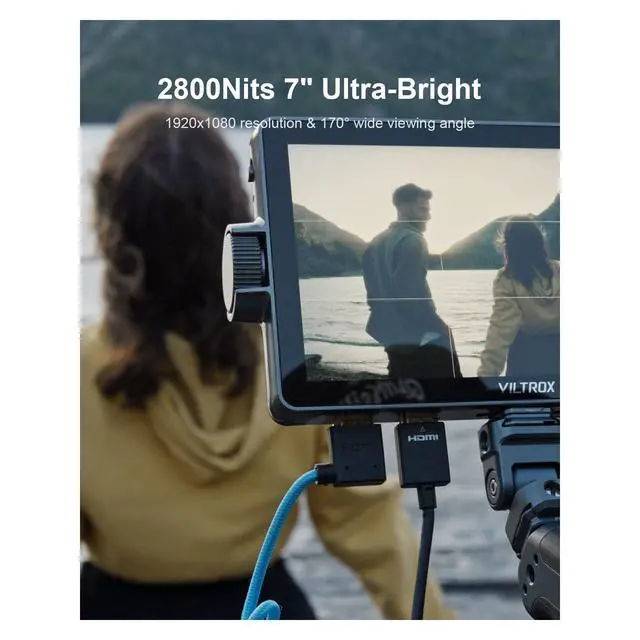 ULTRA-BRIGHT FULL HD SCREEN: Designed for outdoor shooting, the 7-inch IPS touchscreen delivers crystal-clear 1920x1080 resolution with 2800 cd/m brightness and a 170 viewing angle. Easily view your frame even in direct sunlight without external shading. ^^ VILTROX 4K 60Hz HDMI 2.0