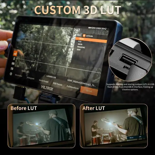 3D LUT: By importing 3D LUTs through USB A, real-time operation can be achieved without waiting for post production editing. Real time debugging ensures that images or design works present consistent color effects on different devices and platforms. ^^ 3