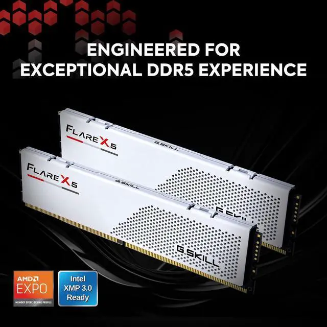 Flare X5 Series with Dual OC Profile Support (AMD EXPO for AMD 600/800 Series Chipset with Ryzen 7000/8000G/9000 Series CPU; and Intel XMP 3.0 for Intel 600/700/800 Series Chipset with 12th/13th/14th Gen Intel Core Series CPU or Intel Core Ultra 200 Series CPU)