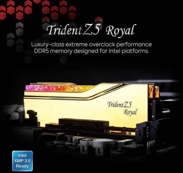G. SKILL Trident Z5 Royal Series DDR5 U-DIMM Memory Kit, Model: F5-8400J4052G24GX2-TR5G ^^ 48GB total capacity kit containing 2x24GB modules, rated for up to DDR5-8400 CL40-52-52-134 at 1.40V ^^ Non-ECC, DDR5 U-DIMM, 288-pin, for Desktop PC & Gaming ^^ Includes JEDEC default profile, and Intel XMP 3.0 memory overclock profile ^^ Do not mix memory kits. Memory kits are sold in matched kits that are designed to run together as a set. Mixing memory kits will result in stability issues or system failure. ^^ For Intel Z790 platforms. Refer to G. SKILL memory QVL or RAM Configurator tool on the G. SKILL website for more details on validated motherboard and hardware. ^^ Usage in any manner inconsistent with manufacturer specifications, warnings, designs, or recommendations will result in lower speeds, system instability, or damage to the system or its components. ^^ Memory kits will boot at JEDEC default SPD speed at default BIOS settings with compatible hardware. ^^ For memory kits with XMP and/or EXPO overclock profile, enable XMP/EXPO/DOCP/A-XMP profile in BIOS to reach up to the rated potential XMP or EXPO overclock speed of the memory kit, subject to the use of compatible hardware.