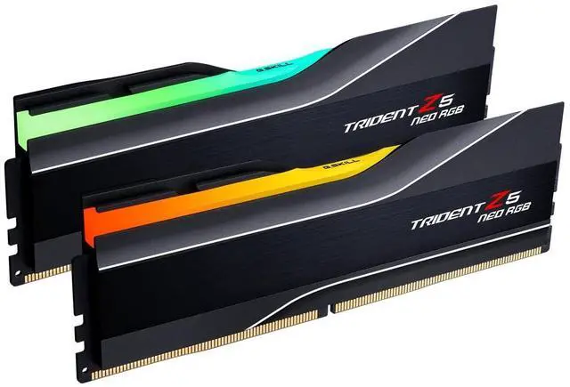 G. SKILL Trident Z5 Neo RGB Series DDR5 U-DIMM Memory Kit, Model: F5-6000J2636H24GX2-TZ5NR ^^ 48GB total capacity kit containing 2x24GB modules, rated for up to DDR5-6000 CL26-36-36-96 at 1.45V ^^ Non-ECC, DDR5 U-DIMM, 288-pin, for Desktop PC & Gaming ^^ Includes JEDEC default profile, and AMD EXPO memory overclock profile ^^ Do not mix memory kits. Memory kits are sold in matched kits that are designed to run together as a set. Mixing memory kits will result in stability issues or system failure. ^^ For AMD X870, AMD X670, AMD B850, AMD B840, AMD B650 platforms. Refer to G. SKILL memory QVL or RAM Configurator tool on the G. SKILL website for more details on validated motherboard and hardware. ^^ Usage in any manner inconsistent with manufacturer specifications, warnings, designs, or recommendations will result in lower speeds, system instability, or damage to the system or its components. ^^ Memory kits will boot at JEDEC default SPD speed at default BIOS settings with compatible hardware. ^^ For memory kits with XMP and/or EXPO overclock profile, enable XMP/EXPO/DOCP/A-XMP profile in BIOS to reach up to the rated potential XMP or EXPO overclock speed of the memory kit, subject to the use of compatible hardware.