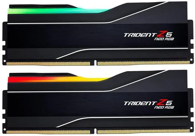 G. SKILL Trident Z5 Neo RGB Series DDR5 U-DIMM Memory Kit, Model: F5-6000J3238G32GX2-TZ5NR ^^ 64GB total capacity kit containing 2x32GB modules, rated for up to DDR5-6000 CL32-38-38-96 at 1.40V ^^ Non-ECC, DDR5 U-DIMM, 288-pin, for Desktop PC & Gaming ^^ Includes JEDEC default profile, and AMD EXPO memory overclock profile ^^ Do not mix memory kits. Memory kits are sold in matched kits that are designed to run together as a set. Mixing memory kits will result in stability issues or system failure. ^^ For AMD X870, AMD X670, AMD B850, AMD B840, AMD B650 platforms. Refer to G. SKILL memory QVL or RAM Configurator tool on the G. SKILL website for more details on validated motherboard and hardware. ^^ Usage in any manner inconsistent with manufacturer specifications, warnings, designs, or recommendations will result in lower speeds, system instability, or damage to the system or its components. ^^ Memory kits will boot at JEDEC default SPD speed at default BIOS settings with compatible hardware. ^^ For memory kits with XMP and/or EXPO overclock profile, enable XMP/EXPO/DOCP/A-XMP profile in BIOS to reach up to the rated potential XMP or EXPO overclock speed of the memory kit, subject to the use of compatible hardware.