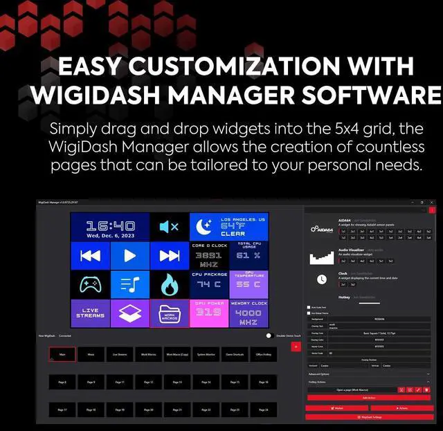 ^^ System Requirements: Windows 10 or 11 (64-bit); 1.8 m USB Type-C Cable included ^^ Easy setup via WigiDash Manager software - Just drag and drop widgets to get started.