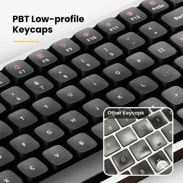 PBT Low-profile Keycaps: These keycaps utilize an advanced dye sublimation process, known as "five-sided dyb-sublimation, " which surpasses ordinary double-shot techniques. This process allows for vibrant and highly detailed patterns to be printed on the keycaps, ensuring a visually appealing and durable keyboard