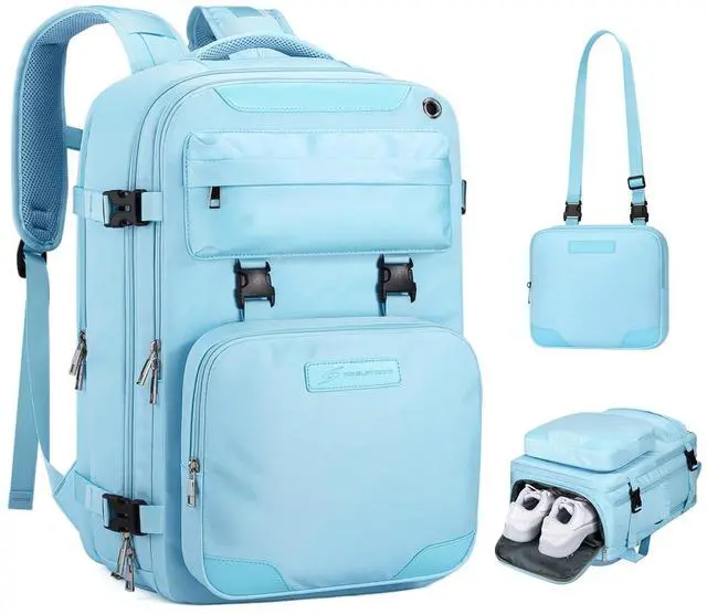Secondly, this carry on backpack for airplanes is designed to adapt to various travel scenarios. It is crafted from lightweight and durable materials, ensuring it wont burden you. The backpack with shoe compartment is also equipped with comfortable shoulder straps and back padding, providing a comfortable carrying experience for long periods, whether youre exploring outdoors or navigating busy airports. Lastly, the stylish appearance of this backpack will make you stand out during your travels. It is available in various colors, suitable for different preferences. Whether youre going for city sightseeing, hiking, or business trips, this lightweight hiking backpack enables you to travel in style.