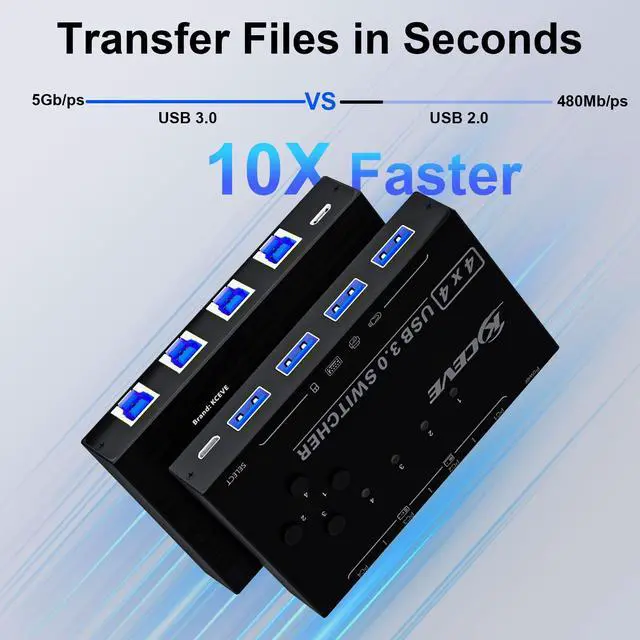 [(Ultra-fast 5GB/s USB 3.0 Data Transfer Rates)] Transfer Files in Seconds! USB 3.0 switch supports ultra-fast USB 3.0 data transfer rates of up to 5Gb/s (10 times faster than USB 2.0). Works perfectly with cameras, camcorders, printers and many other USB devices and is backward compatible with USB 2.0 devices. No more wasted waiting time, making work and play go faster!