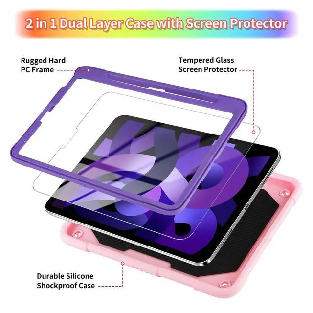 Screen Protector: For iPad air 5 11 inch case with hard PC frame and silicone back cover, dual layer drop proof design is rugged, provides a strong protection to the tablet. With a screen protector made of tempered glass, protects the screen from bumps ^^ For iPad Air 4 11 inch case built-in pencil holder is convenient to put the pencil with the tablet together. Easy installation and removal, no need to remove the case while charging. NO INCLUDE PENCIL ^^