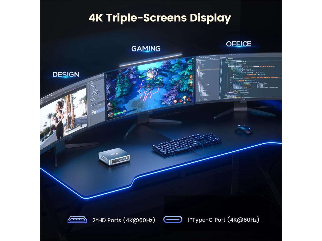 4K TRIPLE-SCREENS DISPLAY - Trycoo mini desktop computer supports triple displays via two HDMI 2.0 ports (4K