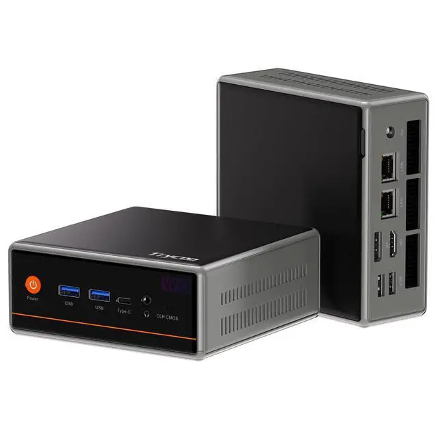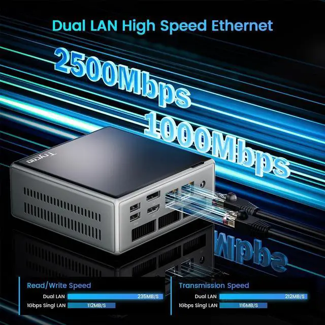 (Storage devices sold separately) ^^ Professional Dual Ethernet Ports and Wireless ConnectivityEquipped with a high-speed 2.5 Gigabit Ethernet port for NAS/file transfers (up to 2.5G bps) and a standard Gigabit port for stable network connections. Combined with WiFi 6 and Bluetooth 5.2 technology, it delivers flexible, stable, and low-latency connectivity for gaming, streaming, and home office use. ^^ Triple-display & 4K/60Hz UHD Video OutputThis small pc has Radeon Graphics that frequency is supports 4K 60Hz triple screen display. It can support up to three 4K displays via HD port, Type-C, without any limitation on the combination used.