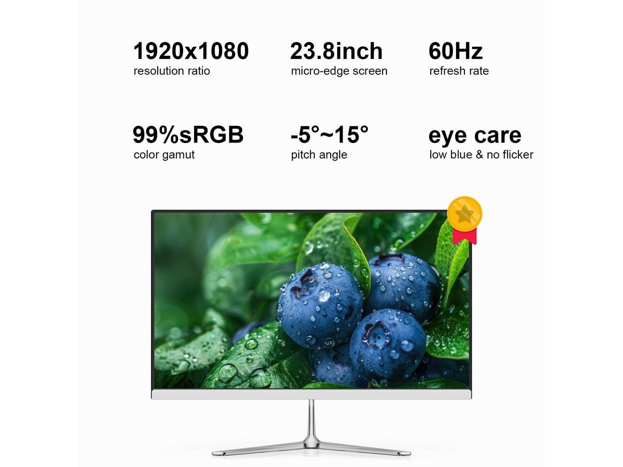 23.8" FHD Display23.8" FHD anti-glare display, 250 nits, 72% NTSC (1920 x 1080). Enjoy 2000,000 pixels for crystal-clear visuals and vibrant image quality
