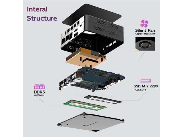 - [(16GB DDR5 RAM & 1TB SSD)] M9S Micro Computers N305 is installed with the internal 1TB M.2 NVME SSD and 16GB DDR5 RAM(up to 32GB). DIY M.2 2280 NVMe SSD/HDD(not included) in the detachable empty base to expand the storage up to 2TB, so you don't need to worry about insufficient storage space.