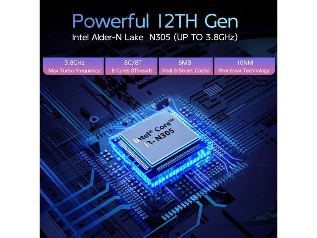 - [(4K@60Hz Triple Display)] N305 mini pc with HDMI 2.0 port*1, DP V1.4 port*1 and Type-C USB 3.0 port *1,which can connect three monitors at the same time for multitasking. The high-definition 4k video allows you and your family to have an impressive visual experience. Compact Design: Ultra-small form factor mini PC ideal for home or office use.