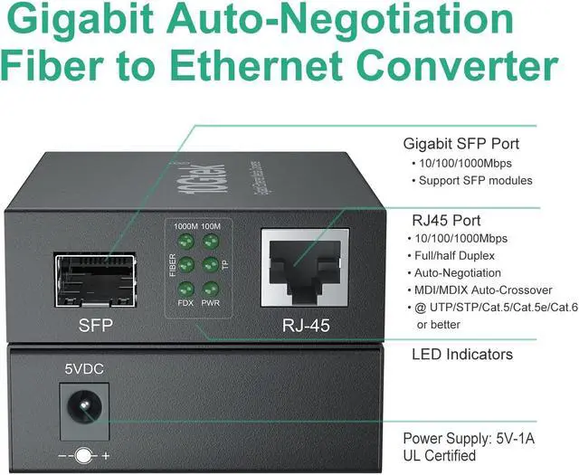 Reliable Auto-Negotiation Gigabit Connection - 10/100/1000Mbps Auto-Negotiation RJ45 Port supports Auto-MDI/MDIX Crossover and Half-Duplex / Full-Duplex Transfer Mode, bridging different network speeds and devices to a Gigabit fiber network.