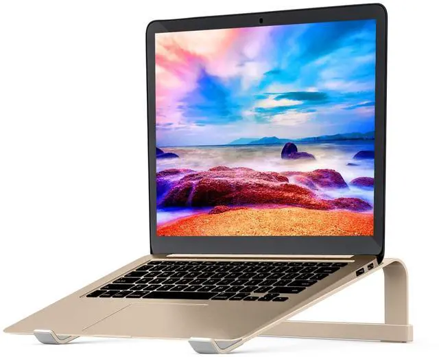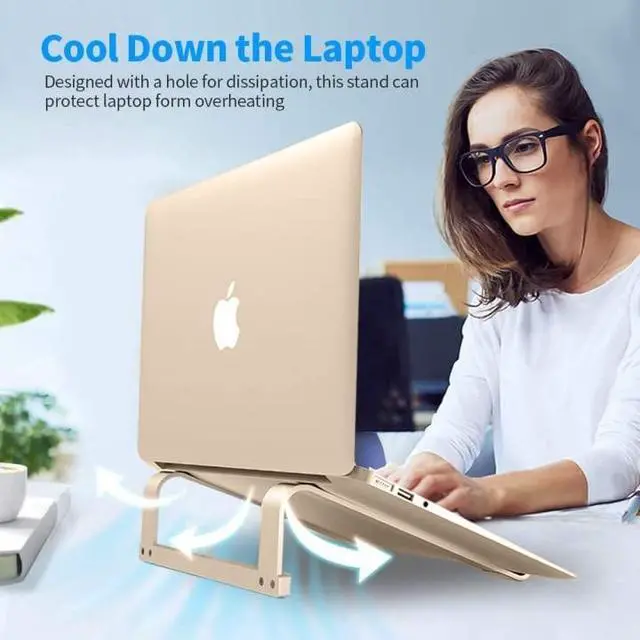 • Lightweight and Sturdy: The computer stand is totally made of thickened Aluminum alloy(0.12-0.4inches thickness), so the stand is sturdier and only 0.5lb lightweight, and Raised front edges hold the laptop in place while in a tilted position and rubberized non-slip pads support your laptop in place to prevent unwanted scratches to your laptop and desk.