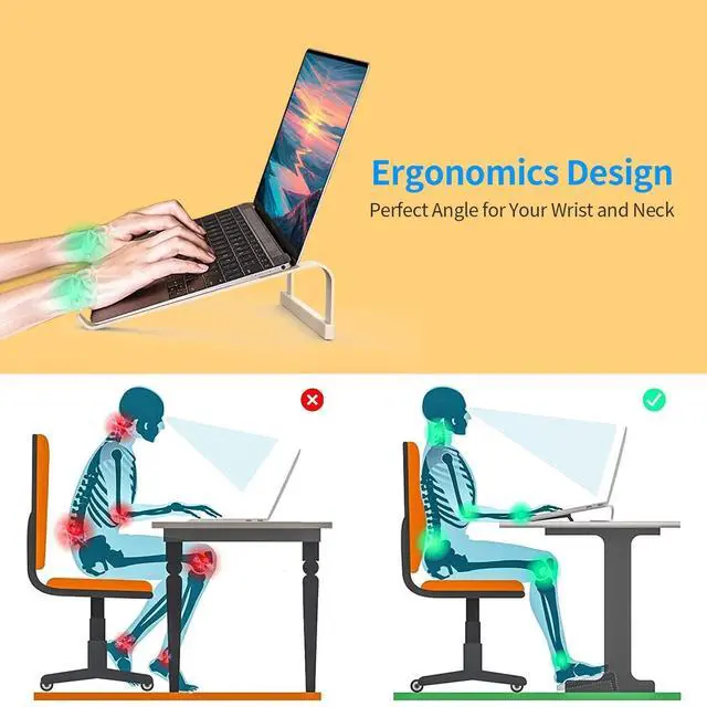 • Ergonomics and Simple Design: This laptop riser elevates your laptop by 3 inches(max) with the best Angle 17 degrees to the perfect eye level and prevents you from hunching over your screen, reduces neck and shoulder pain.Moreover, the edge of the