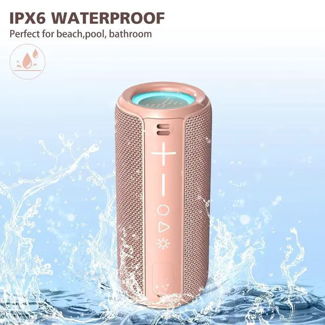 ^^ IPX6 Waterpoof Speaker: The portable speaker is rugged made for outdoor Sports and Adventures, IPX6 Waterproof, no need worry about the influences of the environment. An ideal speaker for all your shower and outdoor sports, hiking, camping, or getting active with friends and families.
