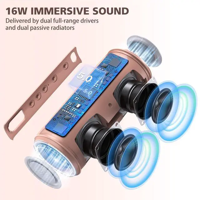 Clear Stereo Sound: Each bluetooth speaker is equipped with two 8W speakers, two bass diaphragms and signal processor to guarrent crisp treble, detailed mids, and enhanced bass. The bluetooth speakers also support dual speakers pairing wirelessly in sync on bluetooth mode. The sound of 4 speakers and 4 diaphragms is an excellent listening experience for enjoy loud surround music.