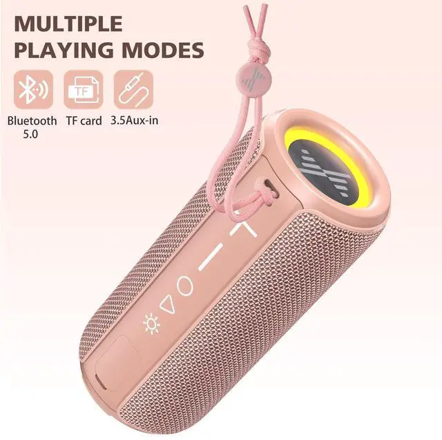 ^^ Multi-playing Modes: The wireless speaker is bluetooth 5.0, you can compatible the speaker with your iphone wirelessly, and also can connect the speaker to your device with 3.5 mm headphone port by the aux-line included. It also supports TF card less than 32GB and mp3 or wav format audio file.