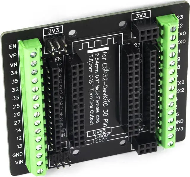 • The dual-row input bus allows you to plug in 0.9 "or 1.0" ESP32 modules for maximum compatibility.