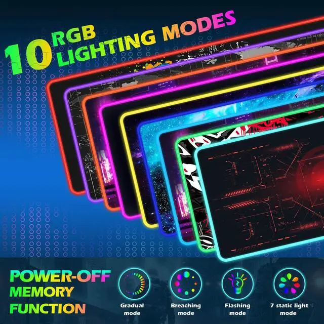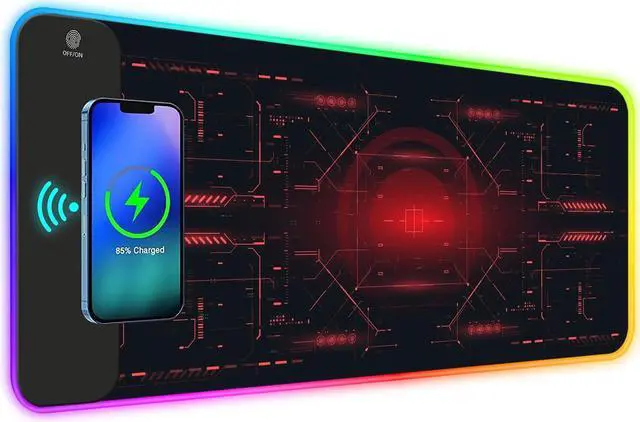 [(10 RGB LED Lighting Modes Light Up Your Desk)] RGB mouse pad with wireless charging made of super luminous, which customizes 10 lighting modes, including colorful, dynamic breathing lighting mode, 7 static monochrome lighting mode and lights off mode. providing a unique atmosphere when playing games or working. The memory function helps to remember the light mode selected when it was last turned on