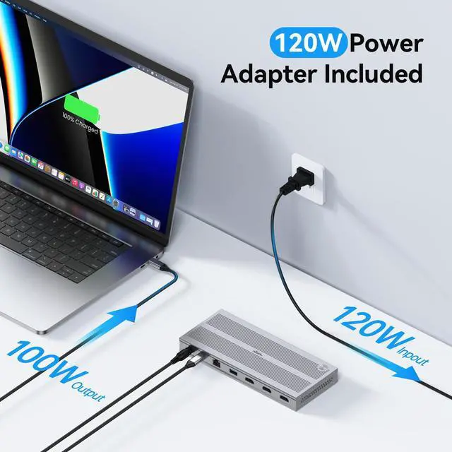 Reliable Power Supply: Equipped with a 120W power supply, no more low-battery anxiety! The displaylink docking station triple monitors ensures your devices stay powered up, so you can work or play for longer without interruptions