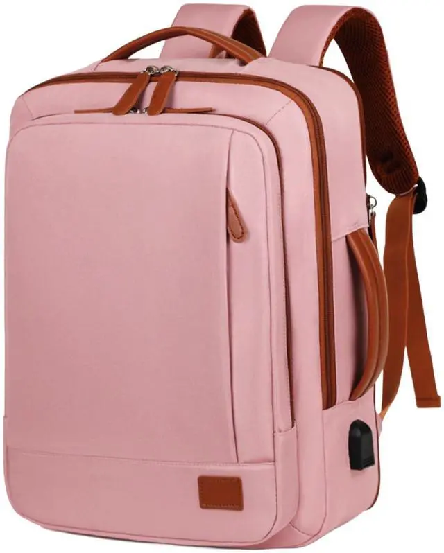 Large Travel Laptop Backpack for Men Women, Expandable Waterproof Carry On Backpack Airline Approved with USB Charging Port & Wet Pocket, 15.6" Business Work Backpack Rucksack Casual Daypack - Pink