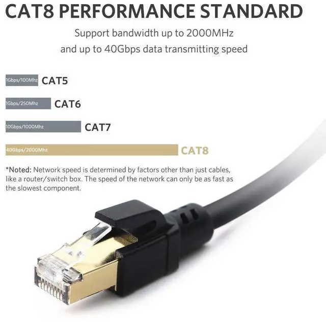 CAT 8 PERFORMANCE STANDARD: ATTMONO Cat 8 Ethernet Cable support bandwidth up to 2000MHz and up to 40Gbps data transmitting speed that is 4x the frequency of Cat 6A cable, so you can connect to your LAN/WAN segments and networking gear at maximum speeds and surf the net, stream videos, music and other data at high speed without worrying about waste time for waiting.