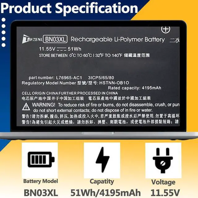 TAVZENL BN03XL 51Wh Battery Replacement for HP Envy X360 15-EE 15-ES 15-EU 15M-EE Envy X360 13-BD 13-BA 13-AY Pavilion Plus 14-EH0000 Series L76985-271 L76965-AC1 HSTNN-DB9N 11.55V 4195mAh