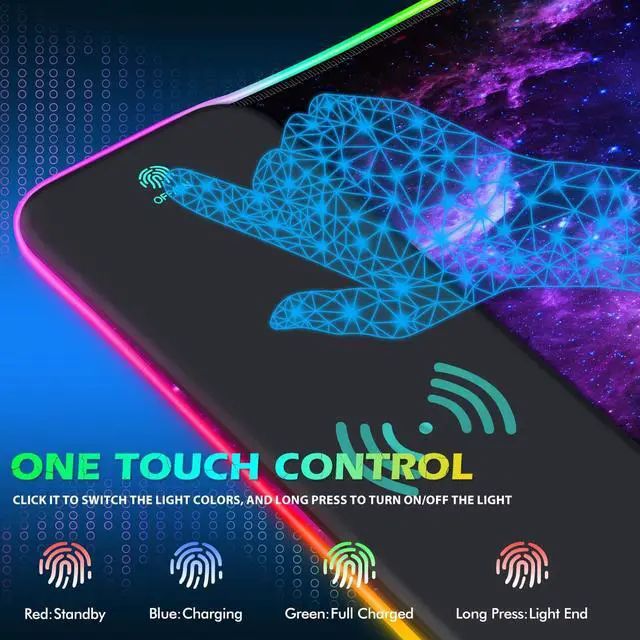 providing a unique atmosphere when playing games or working. The memory function helps to remember the light mode selected when it was last turned on ^^ Enjoy the joys of technologyJust place your phone, wireless charging earphones or watch in the designated wireless charging area and it will automatically start charging. The mouse mat is powered by Type-C, and a charging cable is included in the package Just plug in the Type-C cable to your power adapter or computer and you're ready to go. ^^ XXL Large 4MM Thickness Enhances Gaming ExperienceUpgrade your office desk or gaming station with our extra-large desk pad, measuring 800x300x4MM,.